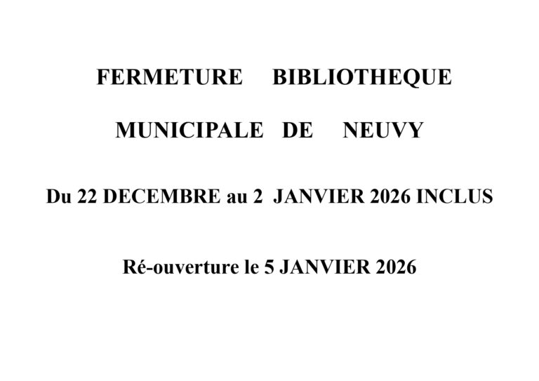 La bibliothèque municipale sera fermée du 22 décembre 2025 au 02 janvier 2026 Réouverture le 05 janvier 2026.