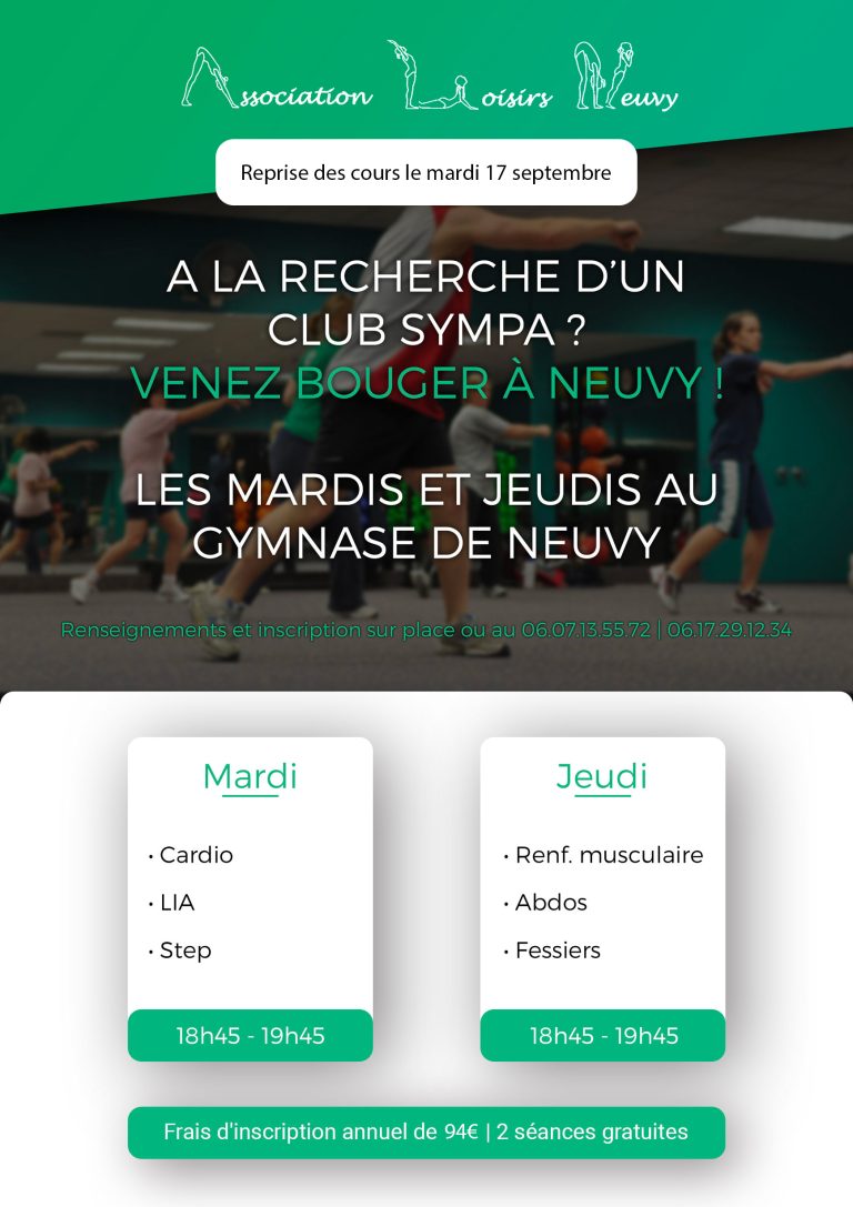 Reprise de la GYM le mardi 16 septembre au Gymnase à 18h45. Deux séances d’essai gratuites. Venez nombreux et nombreuses.
