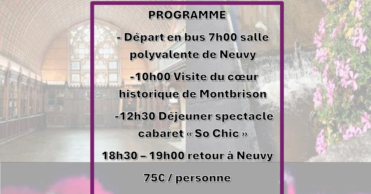 – Départ en bus à 7h de la salle polyvalente de Neuvy