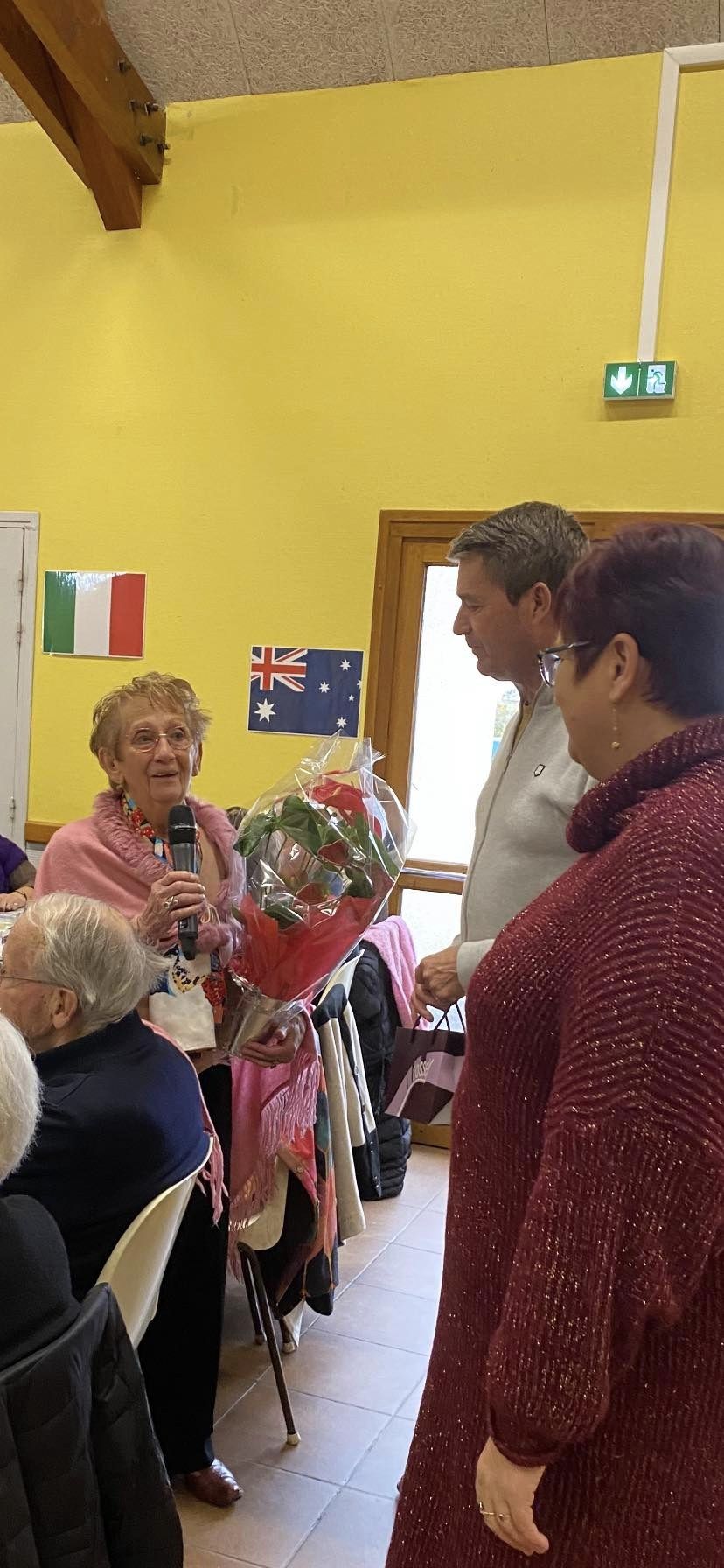 Le dessert a été l’occasion de mettre à l’honneur les doyens de l’assemblée, Madame PICANDET Yvonne née en 1930 et Monsieur Robert BOURLARD né en 1935 qui ont reçu chacun un présent sous des applaudissements chaleureux.