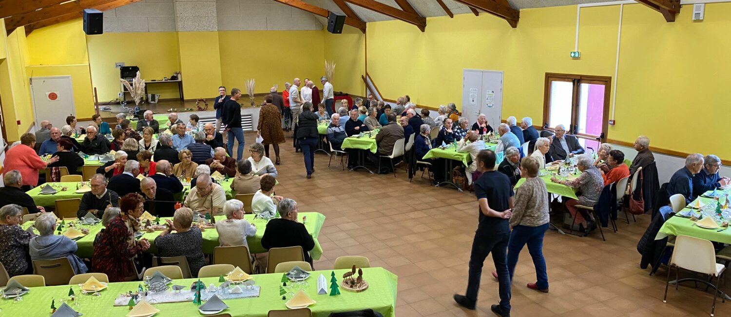 Ce dimanche 29 octobre 2023 à la salle des fêtes de Neuvy, 89 personnes, sans les membres du CCAS et les élus présents, ont participé au repas offert par le Centre Communal d’Action Sociale (C.C.A.S.) aux aînés de la commune âgés de 74 ans et plus. A l’heure du déjeuner, le maire, Alain DEGUELLE, entouré des représentants du C.C.A.S. et de conseillers municipaux, a accueilli les convives par un mot de bienvenue et a invité chacun à profiter de cette journée qui permet de rassembler la mémoire vive du village.