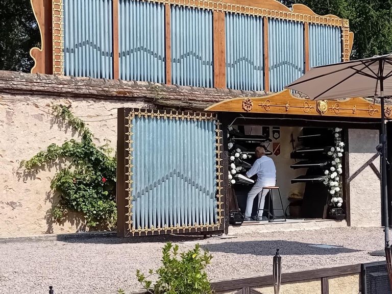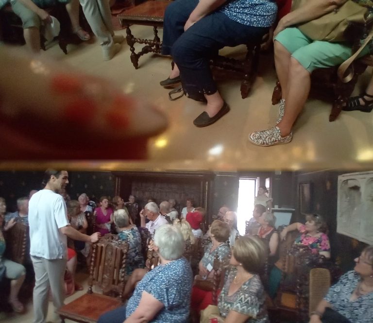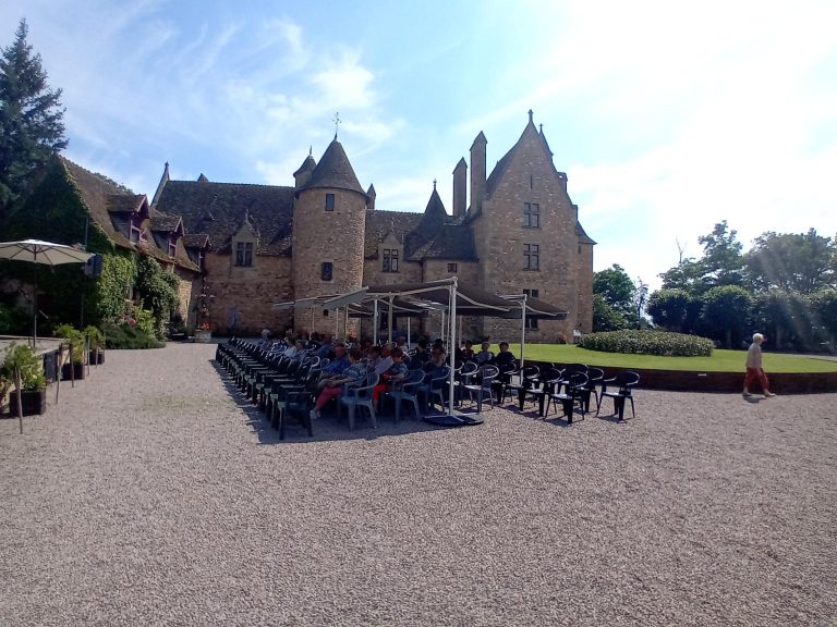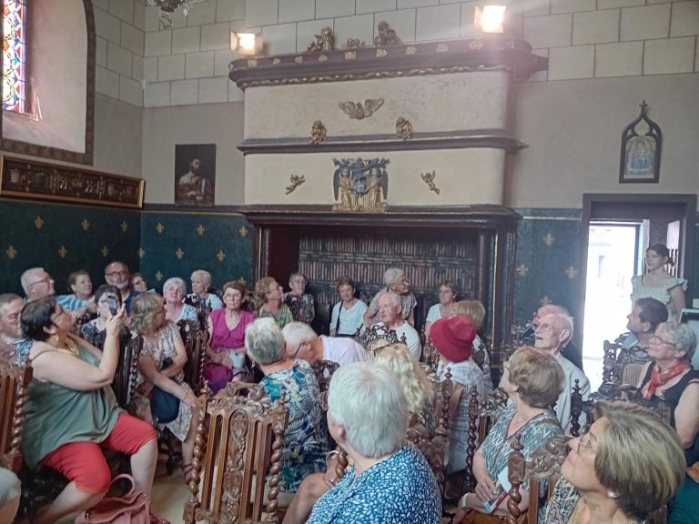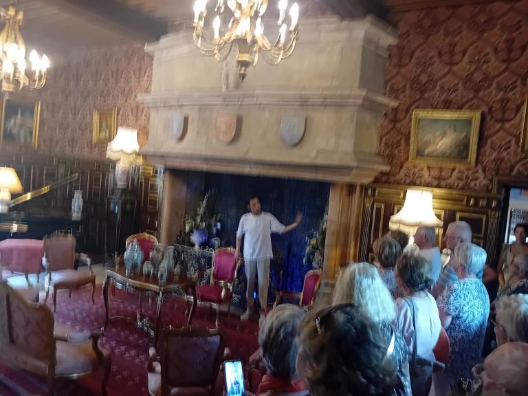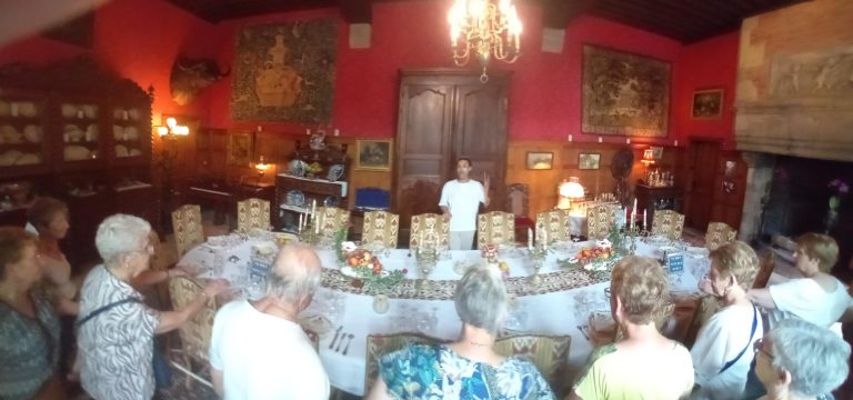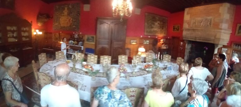 La visite a commencé par la roseraie, le musé des explorateurs (sur une surface d’environ 200 m², découverte des trésors de Mère nature : coraux, coquillages, animaux naturalisés, gorgones, poissons etc.…), 12 pièces meublées avec des collections impressionnantes et des cheminées immenses, le concert d’orgues d’environ 30 mn (c’est le propriétaire qui joue et qui explique avant chaque morceau la musique qui va être interprétée, les personnes ont beaucoup appréciées et applaudies), puis le parc et les jardins, la promenade des remparts à la fin en partie car il était temps de rejoindre le bus pour le retour à Neuvy.